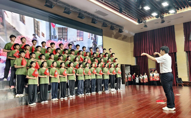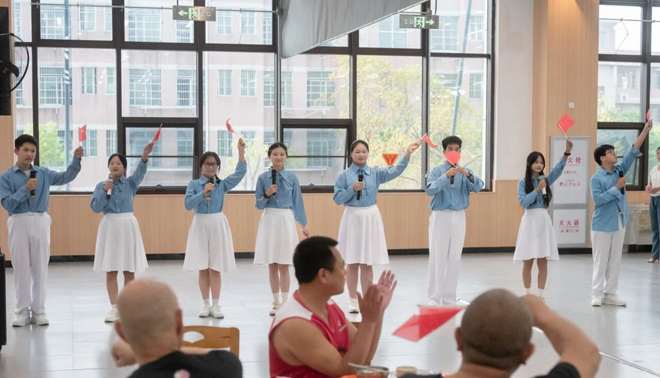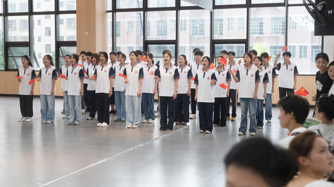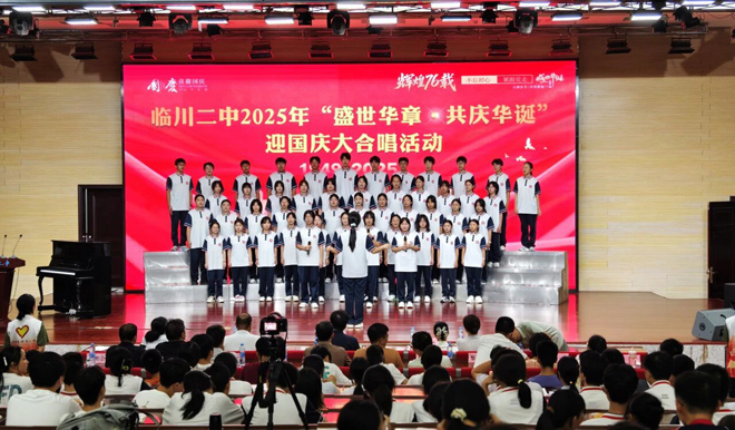 --歌声嘹亮颂祖国,青春逐梦心向党。9月29日晚,玉茗讲堂内灯火璀璨,“庆国庆合唱比赛”在此隆重举行。初一至高二年级共13个班级选送的优秀节目轮番登台,以《我爱你中国》《中国》《万疆》等经典旋律,唱响对党的忠诚、对祖国的热爱。同学们以饱满的激情、和谐的和声,展现新时代青年“强国有我”的责任担当,现场掌声雷动,爱国氛围浓厚。