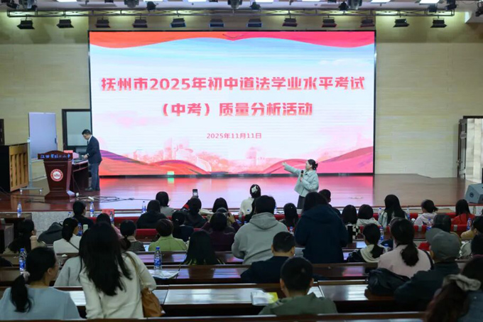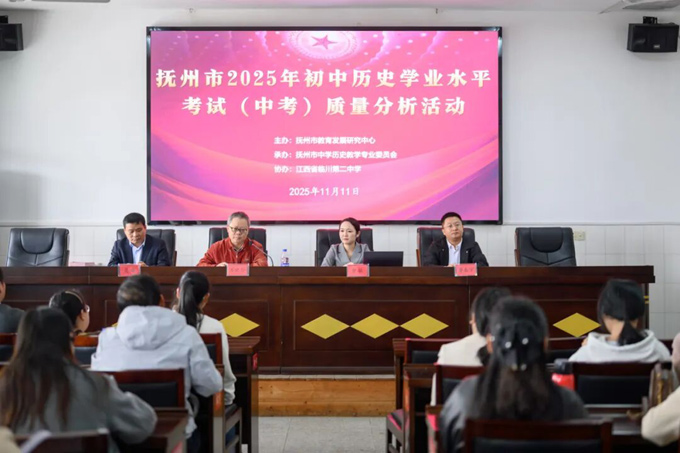 ——为深入推进抚州市初中历史、初中道德与法治学科教学改革,准确把握中考命题趋势,全面提升教师教评一体化实施能力,2025年11月11日上午,由抚州市教育发展研究中心主办、临川第二中学承办的“抚州市2025年初中历史与初中道德与法治学科学业水平考试(中考)质量分析会”在我校顺利召开。