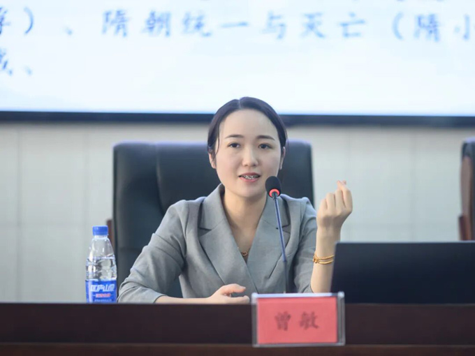 ——在初中历史学科环节,特邀嘉宾江西师大附中曾敏老师作专题分享。她以“价值引领”“情境深构”与“教评一体”为三大切入点,系统阐述了新课标背景下历史学科的教学转型路径与备考策略重构。通过课标解读、考情研判、学情分析与备课实践相结合的方式,层层剖析中考命题新动向,为参训教师提供了具有前瞻性和实操性的教学启示,引导大家从优化备课入手,积极回应新时代人才培养需求。